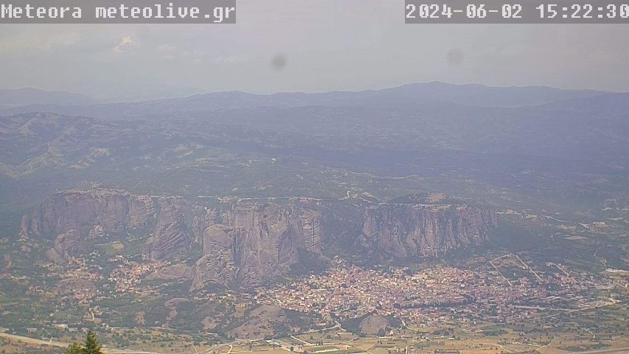 Μετέωρα πανοραμική Καλαμπάκα Κάμερα ||Προηγούμενη κάμερα || Επόμενη κάμερα|| Μοναδική θέα των Μετεώρων από ψηλά και στο βάθος ο επιβλητικός Όλυμπος Live stream player 1 static img 1 min Τα Μετέωρα είναι ένα σύμπλεγμα από σκοτεινόχρωμους βράχους από ψαμμίτη οι οποίοι υψώνονται έξω από την Καλαμπάκα στη Θεσσαλία, κοντά στα πρώτα υψώματα της Πίνδου και των Χασίων. Τα μοναστήρια των Μετεώρων, που είναι χτισμένα στις κορυφές κάποιων